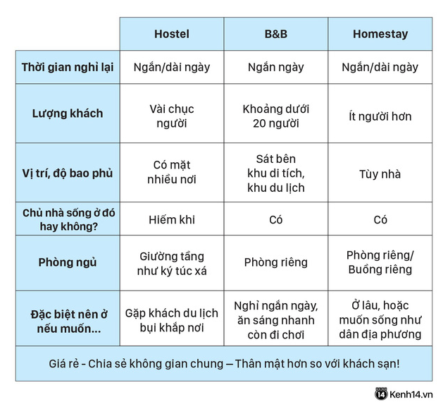 Vậy thì tá túc ở đâu đây, Homestay, Hostel hay Bed and Breakfast... Mà khoan, 3 chỗ đó thật ra khác nhau như thế nào? Bài viết này sẽ cho bạn biết câu trả lời.